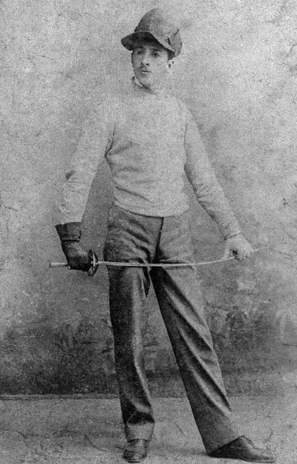 Barrett a los 18 años en Madrid, practicando esgrima.